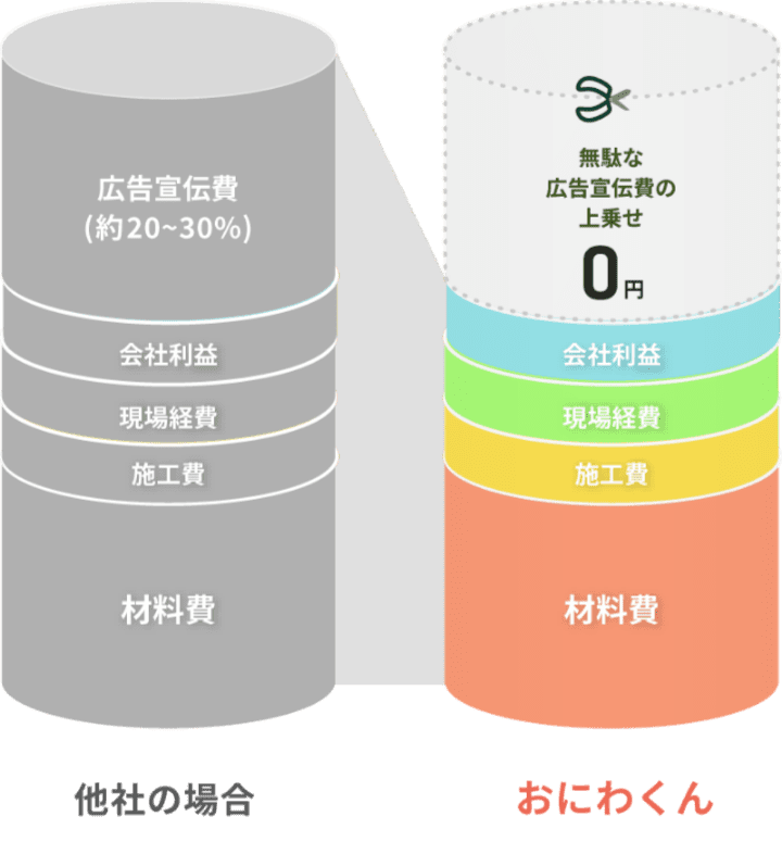 おにわくんはリピーター様が多いので競合他社よりも圧倒的に低価格で作業することが可能です。